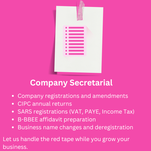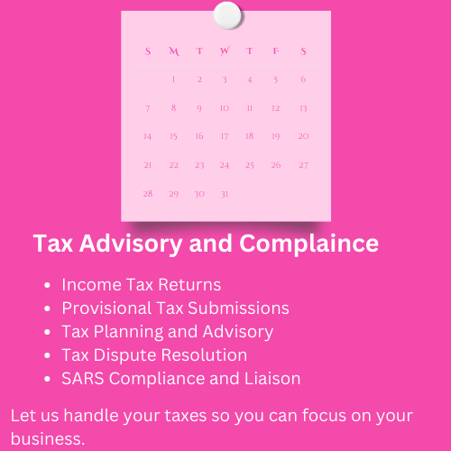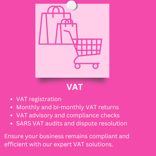 From corporate companies and non-profits to start-ups and sole traders, we provide tailored services in bookkeeping, tax compliance, payroll management, and financial advisory—all with a personal touch that reflects the unique needs of South African businesses.